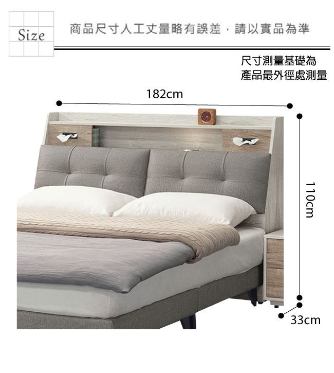 材質 | ◆產品名稱: 【綠家居】提韋克 現代6尺雙人加大貓抓皮革床頭箱(不含床底+不含床墊) 產品尺寸: 木紋雙色 床頭尺寸:(寬)182(深)33x(高)110/公分 ◆材質: 材質:防蛀木心板+耐刮貓抓皮革+高密度泡棉 塗漆:優利坦全包式耐磨噴漆處理