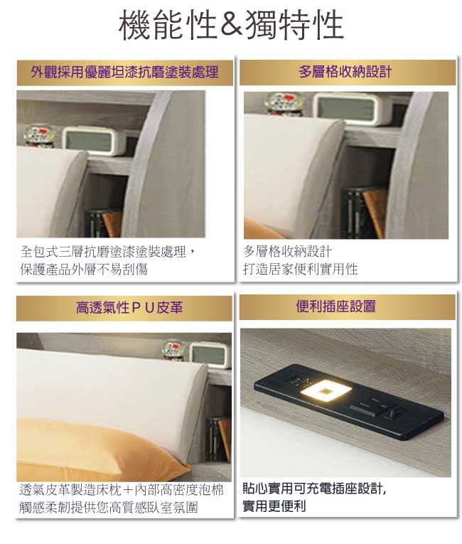 商品介紹 | 【綠家居】歐倫勒 現代5尺雙人皮革床頭箱(不含床底+不含床墊) 橡木紋色系+現代簡約風格+安心材質製造,整體採用防蛀木心板+透氣PU皮革+高密度泡棉等安心材質製造,外層採用優利坦全包式耐磨噴漆處理搭配採用可掀式床頭枕板+開放&隱藏式收納層格+LED閱讀燈+便利插座設置等便利設計,全由專人配送到家,專業安心服務,替你省下更多時間! 【商品特色】 橡木紋色系+現代簡約風格+安心材質製造,使用放心+搭配居家更便利 採用防蛀木心板+透氣PU皮革+高密度泡棉等安心材質製造 採用可掀式床頭枕板+開放&隱藏式收納層格+LED閱讀燈+便利插座設置等便利設計 此商品不需要DIY組立,此商品為組立後之成品 品質保證、專業設計、貼心服務 全由專人配送到家,專業安心服務,替您省下更多時間 |