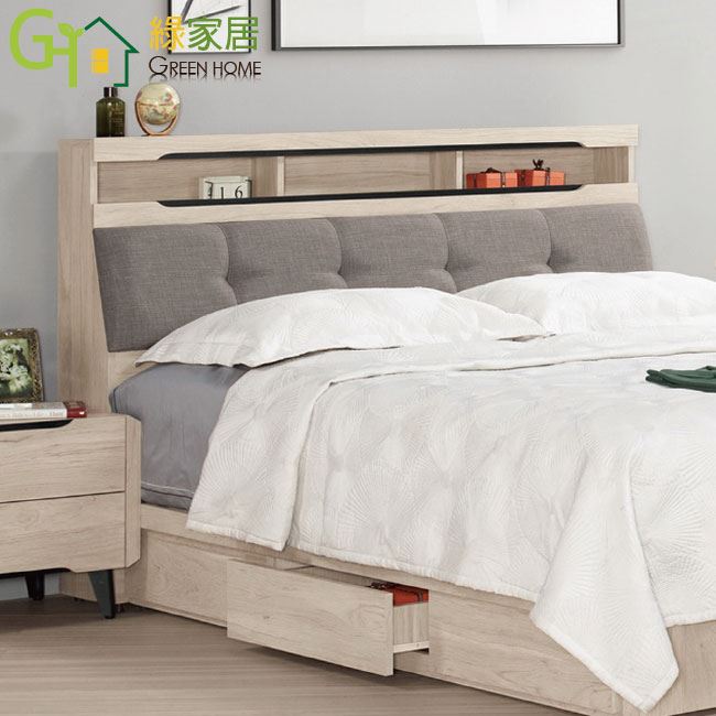 【綠家居】查迪爾 橡木紋6尺雙人加大棉麻布床頭箱(不含床底+不含床墊)
