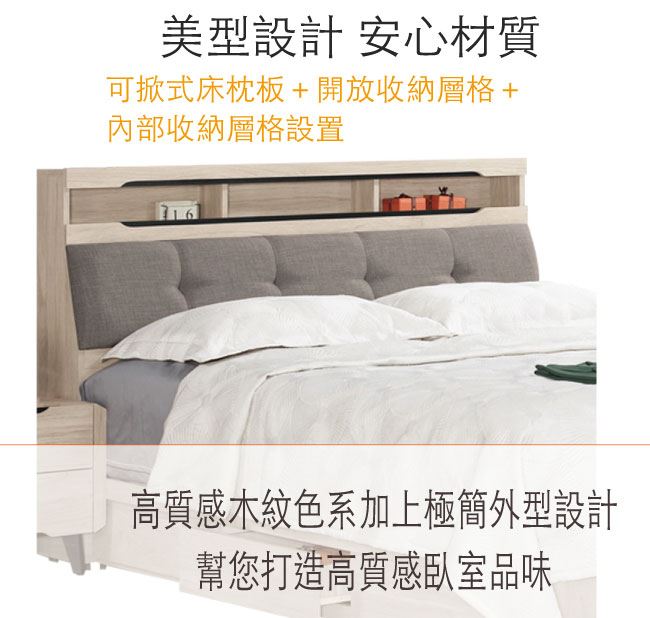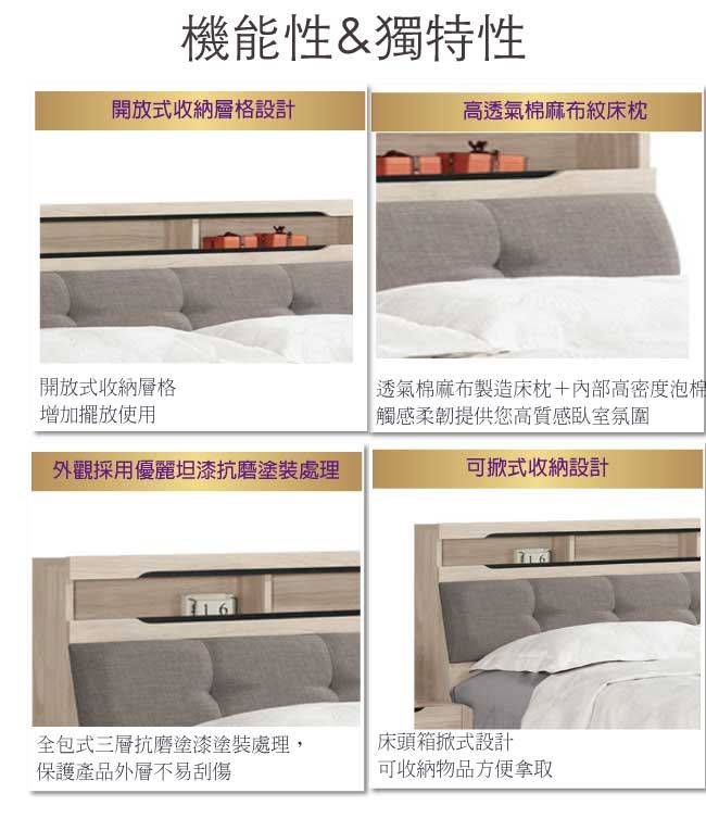 商品介紹 | 【綠家居】查迪爾 橡木紋6尺雙人加大棉麻布床頭箱(不含床底+不含床墊) 橡木紋色系+現代簡約風格+安心材質製造,整體採用防蛀木心板+透氣棉麻布+高密度泡棉等安心材質製造,產品外層採用防潮耐磨噴漆處理搭配採用可掀式床枕板+內&外開放層格等收納空間設計,全由專人配送到家,專業安心服務,替你省下更多時間! 【商品特色】 橡木紋色系+現代簡約風格+安心材質製造,使用放心+搭配居家更便利 採用防蛀木心板+透氣棉麻布+高密度泡棉等安心材質製造 產品外層採用防潮耐磨噴漆處理 搭配採用可掀式床枕板+內&外開放層格等收納空間設計 此商品不需要DIY組立,此商品為組立後之成品 品質保證、專業設計、貼心服務 全由專人配送到家,專業安心服務,替您省下更多時間 |