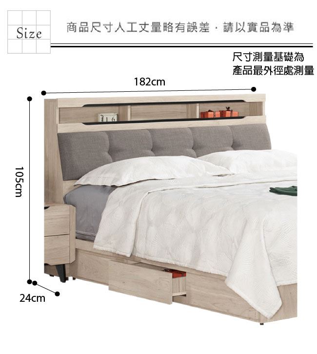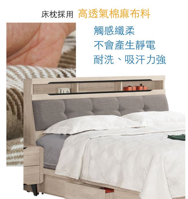 材質 | ◆產品名稱: 【綠家居】查迪爾 橡木紋6尺雙人加大棉麻布床頭箱(不含床底+不含床墊) 床頭箱尺寸:(寬)182x(深)24高)105/公分 ◆材質: 材質:防蛀木心板+透氣棉麻布+高密度泡棉 噴漆:防潮耐磨噴漆處理