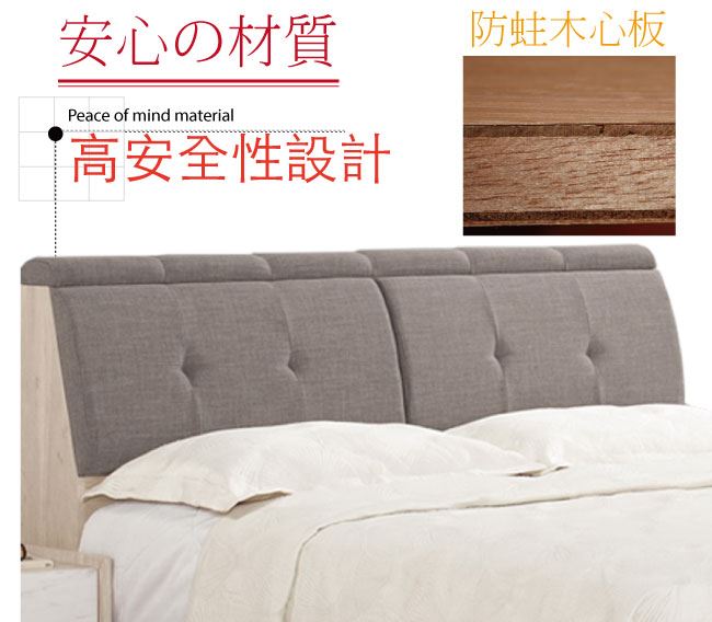 商品介紹 | 【綠家居】查森特 橡木紋6尺雙人加大棉麻布床頭箱(不含床底+不含床墊) 橡木紋色系+現代簡約風格+安心材質製造,整體採用防蛀木心板+透氣棉麻布+高密度泡棉等安心材質製造,產品外層採用防潮耐磨噴漆處理搭配採用可掀式床枕板+內&外開放層格等收納空間設計,全由專人配送到家,專業安心服務,替你省下更多時間! 【商品特色】 橡木紋色系+現代簡約風格+安心材質製造,使用放心+搭配居家更便利 採用防蛀木心板+透氣棉麻布+高密度泡棉等安心材質製造 產品外層採用防潮耐磨噴漆處理 搭配採用可掀式床枕板+內&外開放層格等收納空間設計 此商品不需要DIY組立,此商品為組立後之成品 品質保證、專業設計、貼心服務 全由專人配送到家,專業安心服務,替您省下更多時間 |