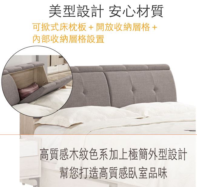 - 可掀式床枕板+內&外開放層格