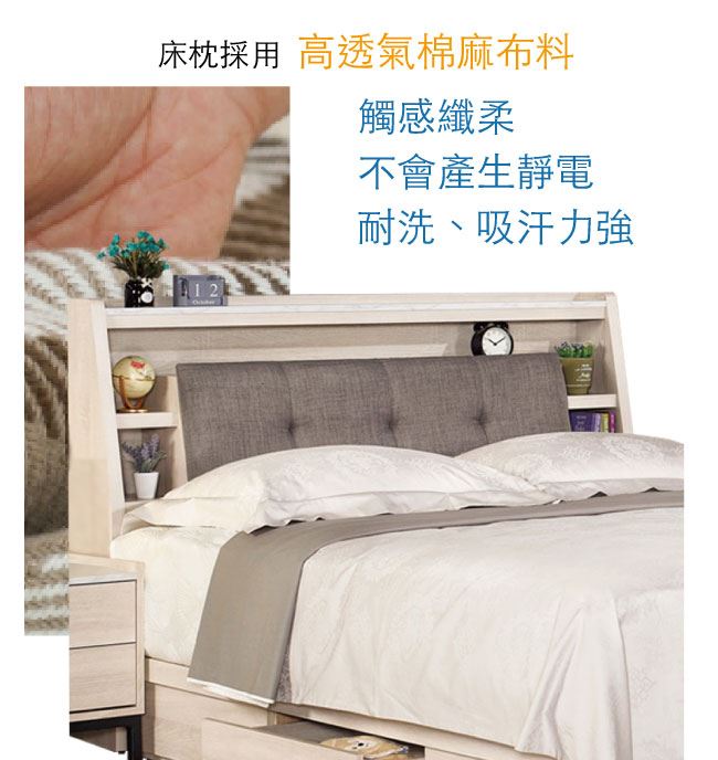 商品介紹 | 【綠家居】海多娜 橡木紋6尺雙人加大棉麻布床頭箱(不含床底+不含床墊) 橡木紋色系+現代簡約風格+安心材質製造,整體採用防蛀木心板+透氣棉麻布+高密度泡棉等安心材質製造,產品外層採用防潮耐磨噴漆處理搭配採用可掀式床枕板+內&外開放層格等收納空間設計,全由專人配送到家,專業安心服務,替你省下更多時間! 【商品特色】 橡木紋色系+現代簡約風格+安心材質製造,使用放心+搭配居家更便利 採用防蛀木心板+透氣棉麻布+高密度泡棉等安心材質製造 產品外層採用防潮耐磨噴漆處理 搭配採用可掀式床枕板+內&外開放層格等收納空間設計 此商品不需要DIY組立,此商品為組立後之成品 品質保證、專業設計、貼心服務 全由專人配送到家,專業安心服務,替您省下更多時間 |