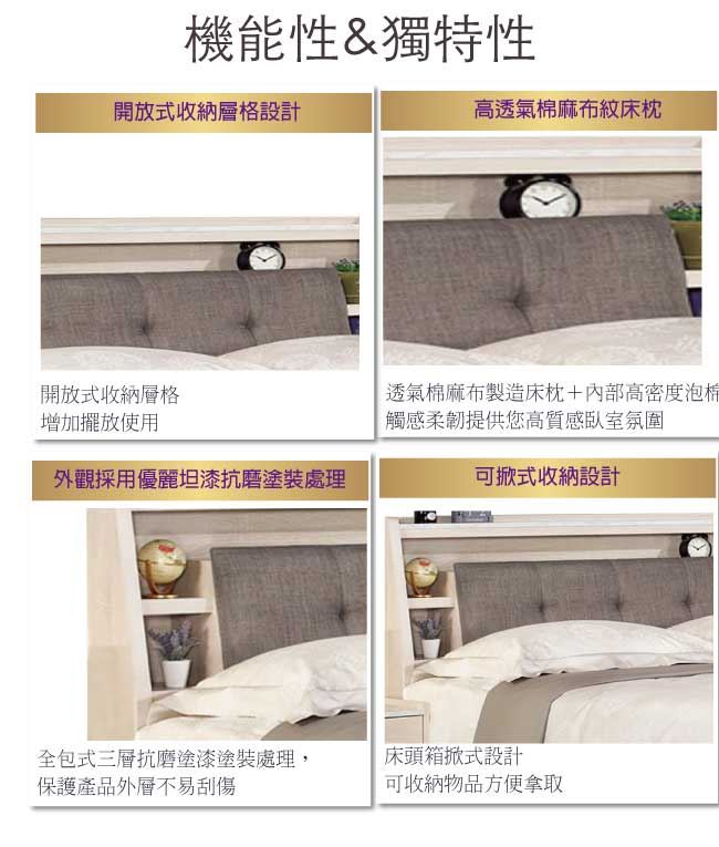 - 可掀式床枕板+內&外開放層格
