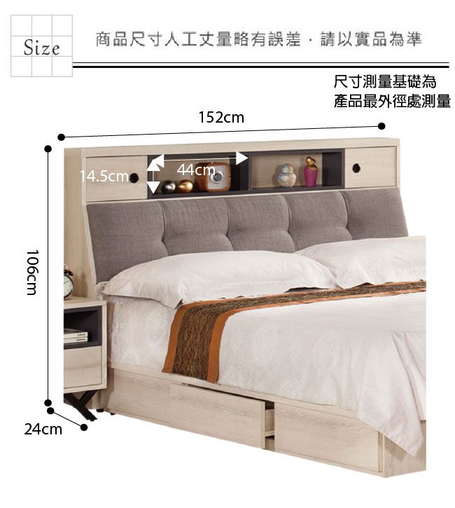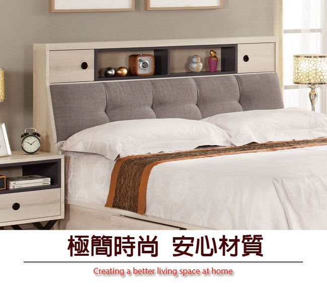 商品介紹 | 【綠家居】柏文 淺橡5尺雙人棉麻布床頭箱(不含床床底+不含床墊) 淺橡木紋色系+現代簡約風格+安心材質製造,整體採用防蛀木心板+透氣棉麻布+高密度泡棉等安心材質製造,產品外層採用防潮耐磨噴漆處理搭配採用可掀式床枕板+內&外開放層格+雙抽格等收納空間設計,全由專人配送到家,專業安心服務,替你省下更多時間! 【商品特色】 淺橡木紋色系+現代簡約風格+安心材質製造,使用放心+搭配居家更便利 採用防蛀木心板+透氣棉麻布+高密度泡棉等安心材質製造 產品外層採用防潮耐磨噴漆處理 搭配採用可掀式床枕板+內&外開放層格+雙抽格等收納空間設計 此商品不需要DIY組立,此商品為組立後之成品 品質保證、專業設計、貼心服務 全由專人配送到家,專業安心服務,替您省下更多時間 |