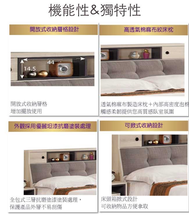 - 可掀式床枕板+內&外開放層格
