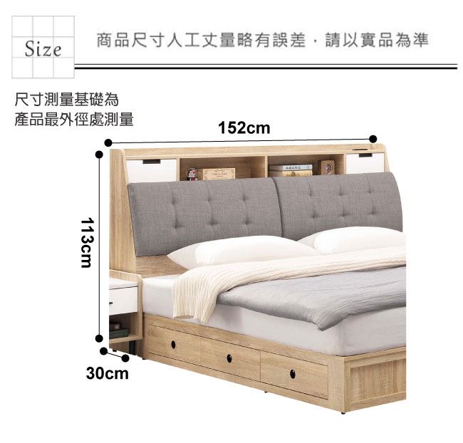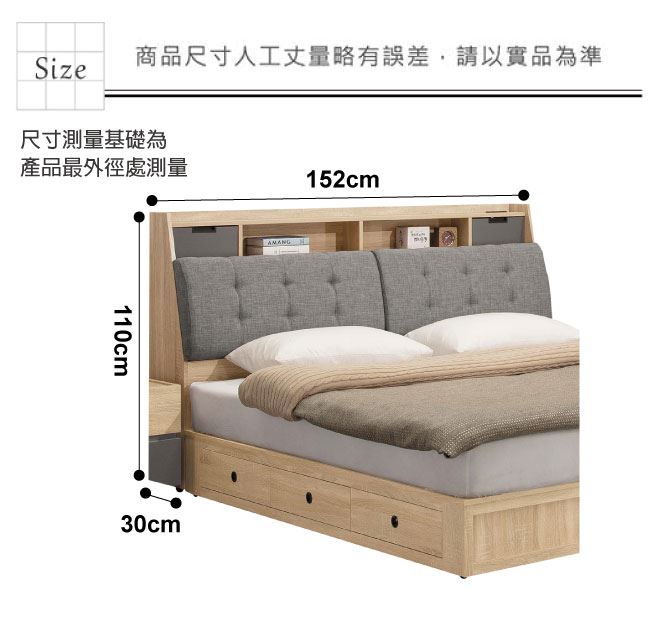 材質 | ◆產品名稱: 【綠家居】科羅利 現代5尺雙人亞麻布床頭箱(二色可選+不含床底+不含床墊) 產品尺寸: 木紋雙色 床頭尺寸:(寬)152(深)30x(高)110/公分 木紋白雙色 床頭尺寸:(寬)152(深)30x(高)113/公分 ◆材質: 材質:防蛀木心板+透氣亞麻布+高密度泡棉 塗漆:優利坦全包式耐磨噴漆處理