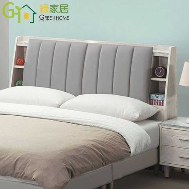 【綠家居】巴菲 淺橡5尺雙人貓抓皮革床頭箱(不含床底+不含床墊)