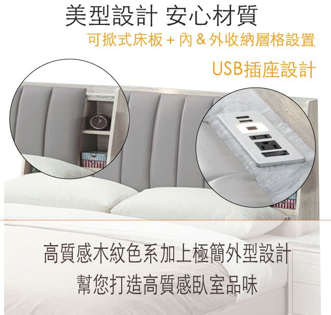 商品 介紹 | 【綠家居】巴菲 淺橡5尺雙人貓抓皮革床頭箱(不含床底+不含床墊) 淺橡木紋色系+現代簡約風格+安心材質製造,整體採用防蛀木心板+耐刮貓抓皮革+高密度泡棉等安心材質製造,產品外層採用防潮耐磨噴漆處理搭配採用可掀式床枕板+內&外開放層格+便利插座設置等收納空間設計,全由專人配送到家,專業安心服務,替你省下更多時間! 【商品特色】 淺橡木紋色系+現代簡約風格+安心材質製造,使用放心+搭配居家更便利 採用防蛀木心板+耐刮貓抓皮革+高密度泡棉等安心材質製造 產品外層採用防潮耐磨噴漆處理 搭配採用可掀式床枕板+內&外開放層格+便利插座設置等收納空間設計 此商品不需要DIY組立,此商品為組立後之成品 品質保證、專業設計、貼心服務 全由專人配送到家,專業安心服務,替您省下更多時間 |