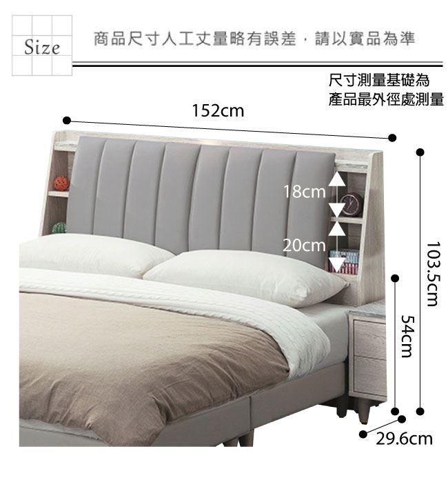 材質 | ◆產品名稱: 【綠家居】巴菲 淺橡5尺雙人貓抓皮革床頭箱(不含床底+不含床墊) 床頭箱尺寸:(寬)152x(深)29.6(高)103.5/公分 ◆材質: 材質:防蛀木心板+耐刮貓抓皮革+高密度泡棉 噴漆:防潮耐磨噴漆處理
