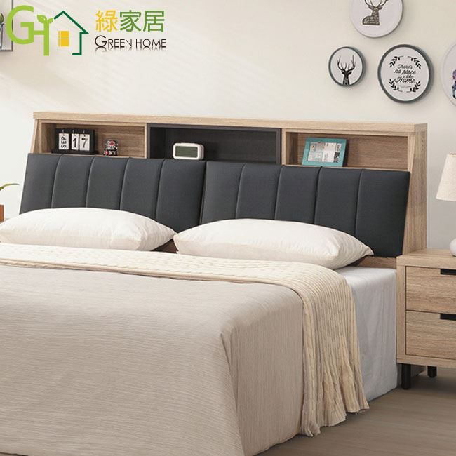 【綠家居】古特菲 淺橡5尺雙人貓抓皮革床頭箱(不含床底+不含床墊)