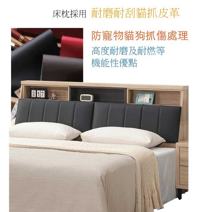 商品 介紹 | 【綠家居】古特菲 淺橡5尺雙人貓抓皮革床頭箱(不含床底+不含床墊) 淺橡木紋色系+現代簡約風格+安心材質製造,整體採用防蛀木心板+耐刮貓抓皮革+高密度泡棉等安心材質製造,產品外層採用防潮耐磨噴漆處理搭配採用可掀式床枕板+內&外開放層格等收納空間設計,全由專人配送到家,專業安心服務,替你省下更多時間! 【商品特色】 淺橡木紋色系+現代簡約風格+安心材質製造,使用放心+搭配居家更便利 採用防蛀木心板+耐刮貓抓皮革+高密度泡棉等安心材質製造 產品外層採用防潮耐磨噴漆處理 搭配採用可掀式床枕板+內&外開放層格等收納空間設計 此商品不需要DIY組立,此商品為組立後之成品 品質保證、專業設計、貼心服務 全由專人配送到家,專業安心服務,替您省下更多時間 |