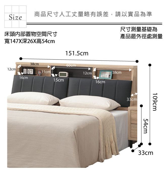 材質 | ◆產品名稱: 【綠家居】古特菲 淺橡5尺雙人貓抓皮革床頭箱(不含床底+不含床墊) 床頭箱尺寸:(寬)151.5x(深)33(高)109/公分 ◆材質: 材質:防蛀木心板+耐刮貓抓皮革+高密度泡棉 噴漆:防潮耐磨噴漆處理