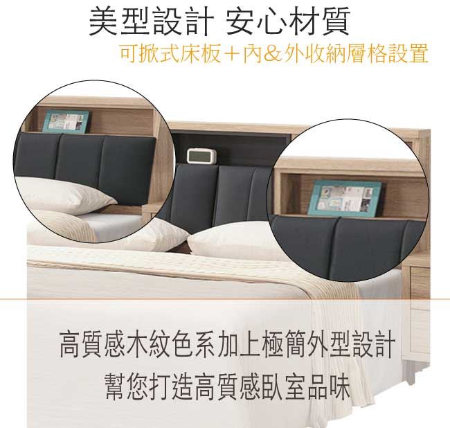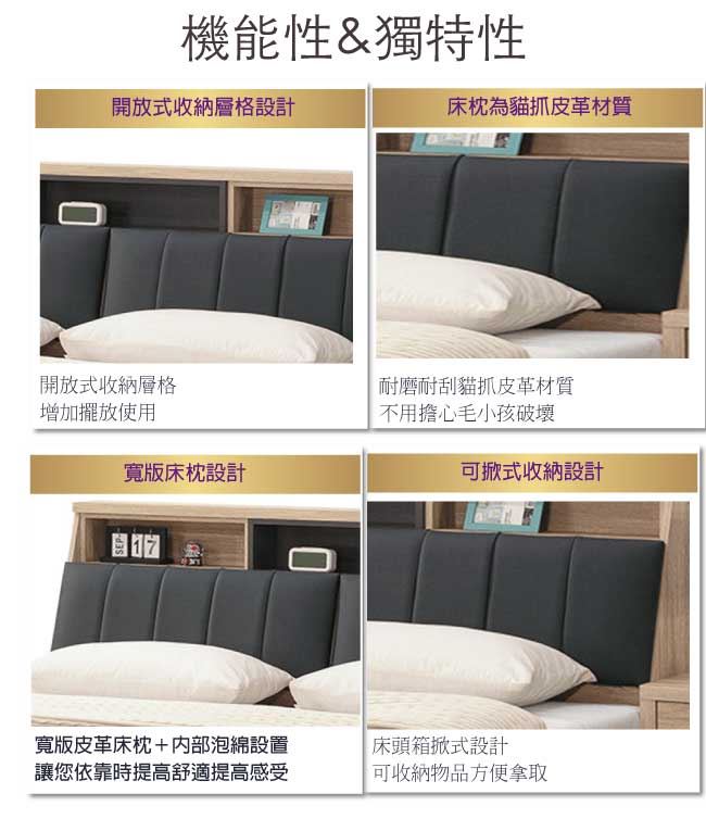 商品 介紹 | 【綠家居】古特菲 淺橡6尺雙人加大貓抓皮革床頭箱(不含床底+不含床墊) 淺橡木紋色系+現代簡約風格+安心材質製造,整體採用防蛀木心板+耐刮貓抓皮革+高密度泡棉等安心材質製造,產品外層採用防潮耐磨噴漆處理搭配採用可掀式床枕板+內&外開放層格等收納空間設計,全由專人配送到家,專業安心服務,替你省下更多時間! 【商品特色】 淺橡木紋色系+現代簡約風格+安心材質製造,使用放心+搭配居家更便利 採用防蛀木心板+耐刮貓抓皮革+高密度泡棉等安心材質製造 產品外層採用防潮耐磨噴漆處理 搭配採用可掀式床枕板+內&外開放層格等收納空間設計 此商品不需要DIY組立,此商品為組立後之成品 品質保證、專業設計、貼心服務 全由專人配送到家,專業安心服務,替您省下更多時間 |