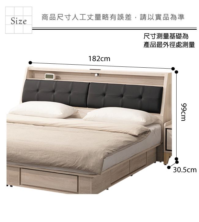 材質 | ◆產品名稱: 【綠家居】查德 6尺雙人加大貓抓皮革床頭箱(二色可選+不含床底+不含床墊) 床頭箱尺寸:(寬)182x(深)30.5高)99/公分 ◆材質: 材質:防蛀木心板+耐刮貓抓皮革+高密度泡棉 噴漆:防潮耐磨噴漆處理
