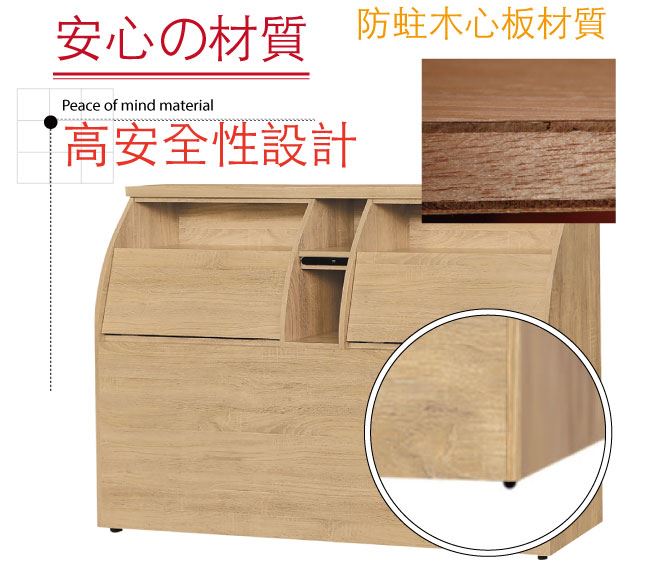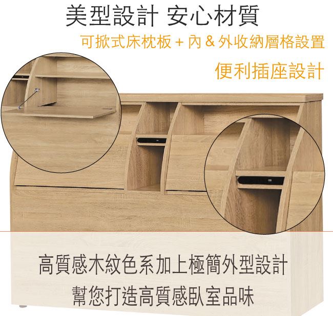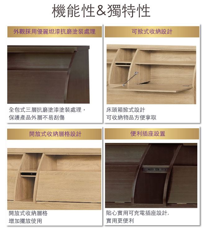 - 開放&隱藏式收納+可掀式床枕板