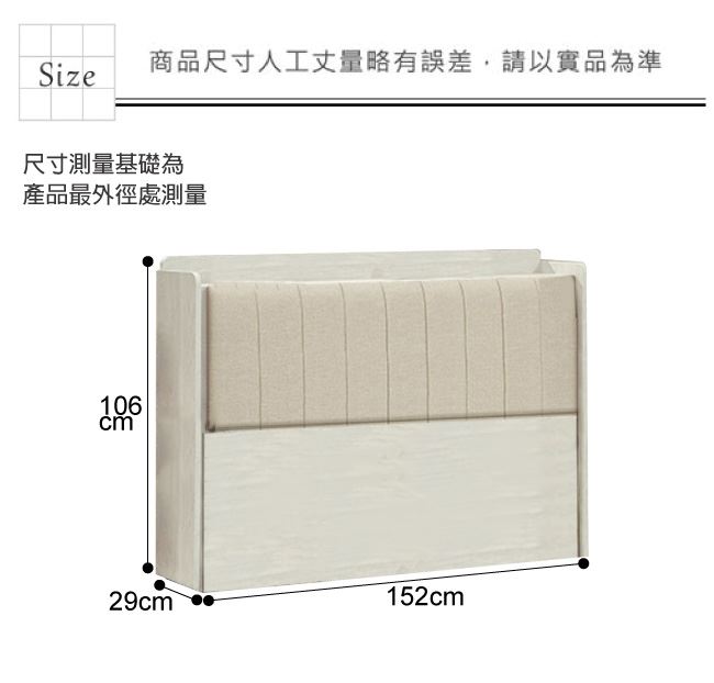 - 床頭箱尺寸:(寬)152x(深)29(高)106/公分