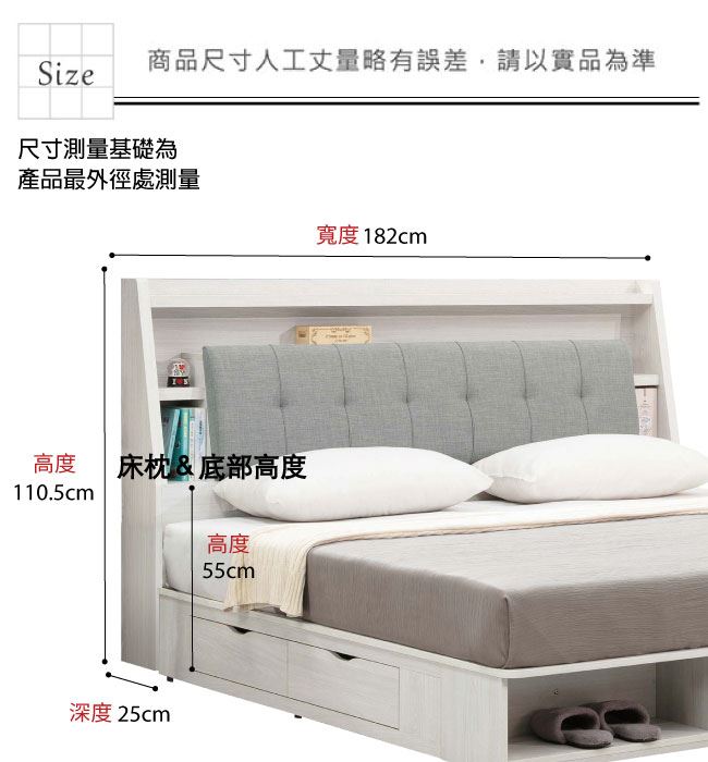 材質 | ◆產品名稱:【綠家居】利伯維6尺雙人加大亞麻布床頭箱(不含床底+不含床墊) 床頭尺寸:(寬)182x(深)25(高)110.5/公分 ◆材質: 材質:防蛀木心板+透氣亞麻布+高密度泡棉 噴漆:防潮耐磨噴漆處理