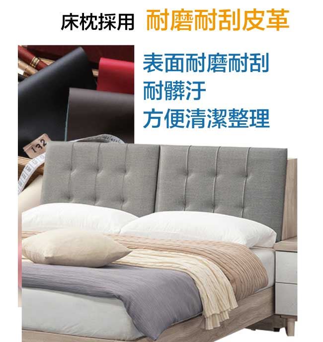 商 品 介 紹 | 【綠家居】都柏林5尺雙人耐刮皮革床頭箱(不含床底+不含床墊) 淺橡木紋色系+現代簡約風格+安心材質製造,整體採用防蛀木心板+耐磨耐刮皮革+高密度泡棉等安心材質製造,產品外層採用防潮耐磨噴漆處理搭配採用可掀式床枕板+內&外開放層格等收納空間設計,全由專人配送到家,專業安心服務,替你省下更多時間! 【商品特色】 淺橡木紋色系+現代簡約風格+安心材質製造,使用放心+搭配居家更便利 採用防蛀木心板+耐磨耐刮皮革+高密度泡棉等安心材質製造 產品外層採用防潮耐磨噴漆處理 搭配採用可掀式床枕板+內&外開放層格等收納空間設計 此商品不需要DIY組立,此商品為組立後之成品 品質保證、專業設計、貼心服務 全由專人配送到家,專業安心服務,替您省下更多時間