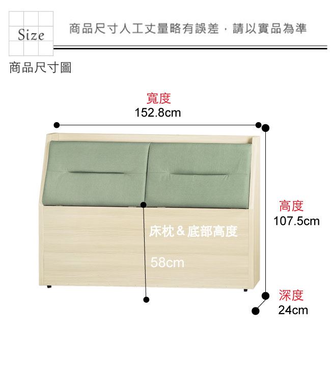 材質 | ◆產品名稱:【綠家居】帝安5尺雙人貓抓皮革床頭箱(三色可選+便利插座設置) 床頭尺寸:(寬)152.8x(深)24(高)107.5/公分 ◆材質: 材質:防蛀木心板+防刮貓抓皮革+高密度泡棉+防潮耐磨底座 噴漆:防潮耐磨噴漆處理