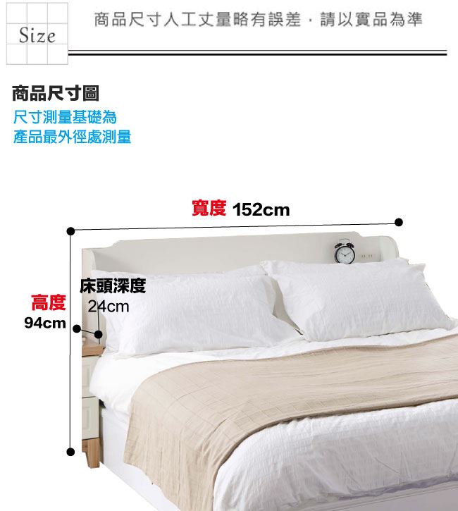 材質 | ◆產品名稱:【綠家居】路可簡約白5尺雙人可收納床頭箱(不含床底+不含床墊) 床頭尺寸:(寬)152x(深)24(高)94/公分 ◆材質: 材質:防蛀木心板+防潮MDF板材 噴漆:防潮亮面噴漆處理