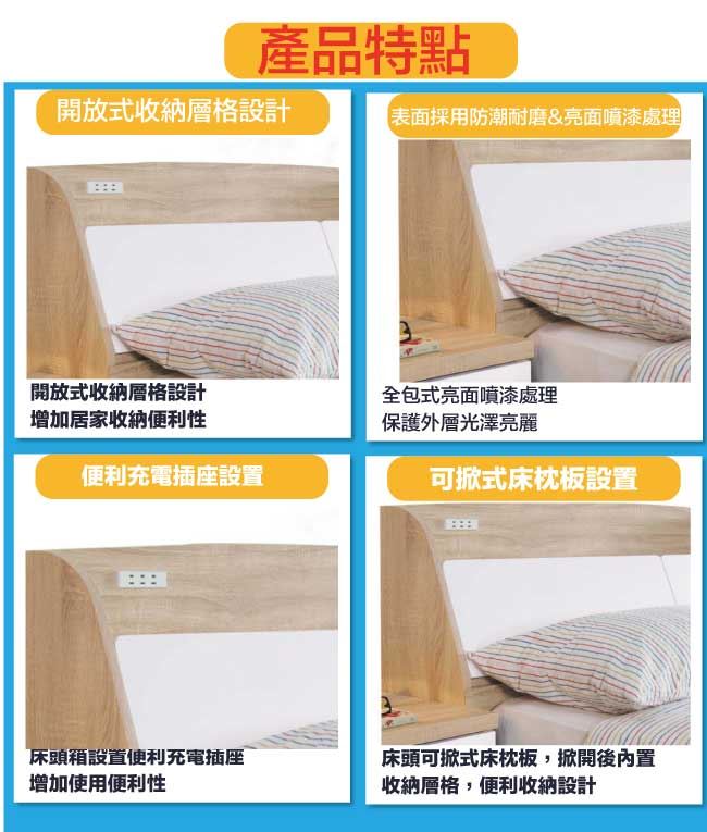 商品 介紹 | 【綠家居】哈路雙色5尺雙人可收納床頭箱(不含床底+不含床墊) 木紋雙色系+現代簡約風格+安心材質製造,整體採用防蛀木心板安心材質製造,產品外層採用防潮耐磨&亮面噴漆處理搭配採用可掀式床板+內&外開放層格+便利充電插座設置等收納空間設計,全由專人配送到家,專業安心服務,替你省下更多時間! 【商品特色】 木紋雙色系+現代簡約風格+安心材質製造,使用放心+搭配居家更便利 採用防蛀木心板安心材質製造 產品外層採用防潮耐磨&亮面噴漆處理 搭配採用可掀式床板+內&外開放層格+便利充電插座設置等收納空間設計 此商品不需要DIY組立,此商品為組立後之成品 品質保證、專業設計、貼心服務 全由專人配送到家,專業安心服務,替您省下更多時間 |
