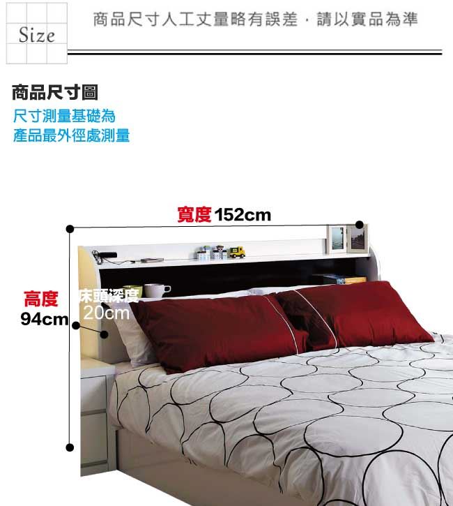 【綠家居】西路卡簡約白5尺雙人可收納床頭箱(不含床底+不含床墊)