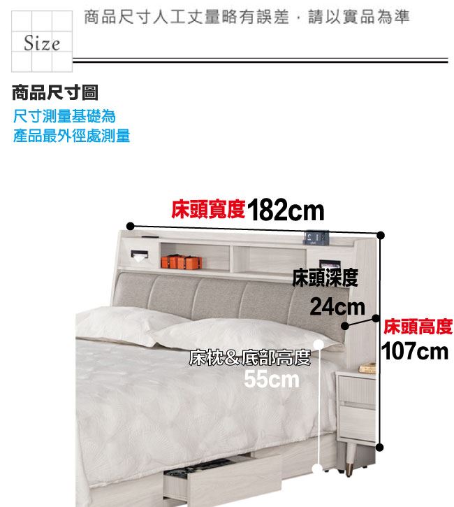 - 可掀式床枕板+內&外收納空間