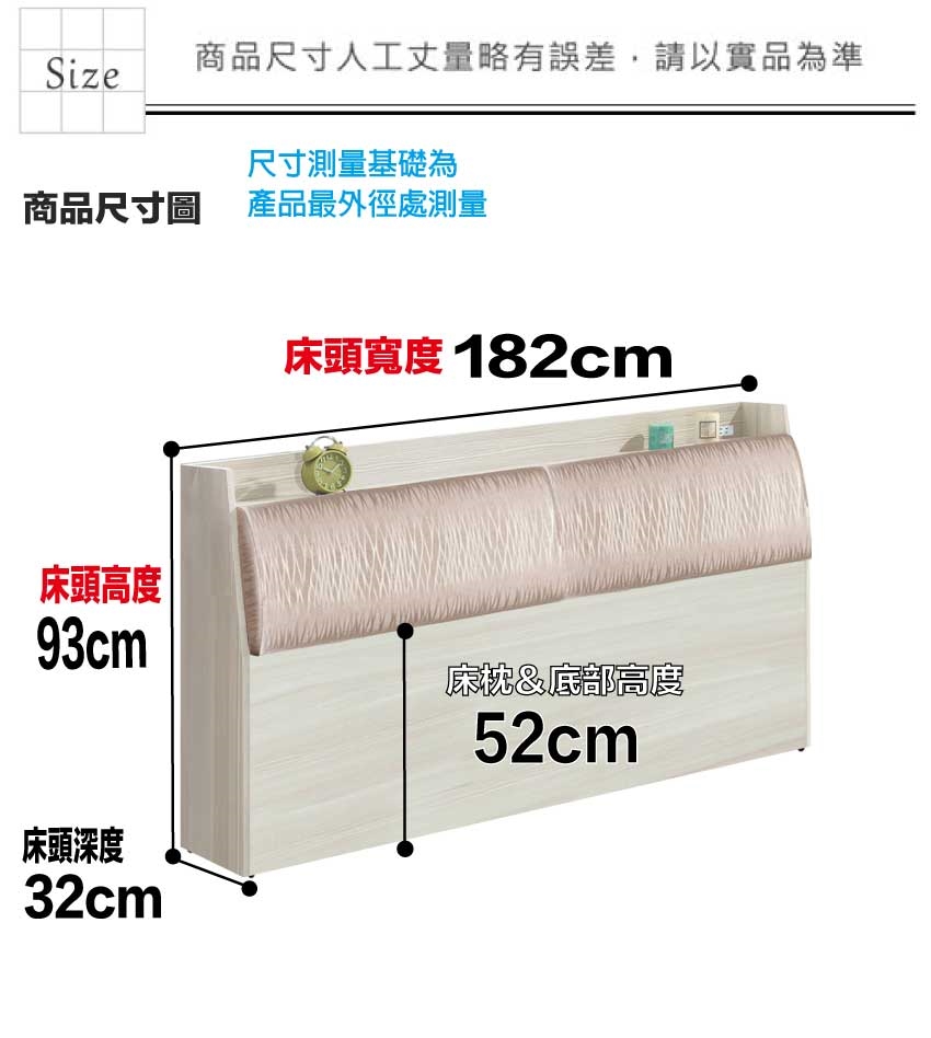 床頭尺寸:(寬)182x(深)32x(高)93/公分