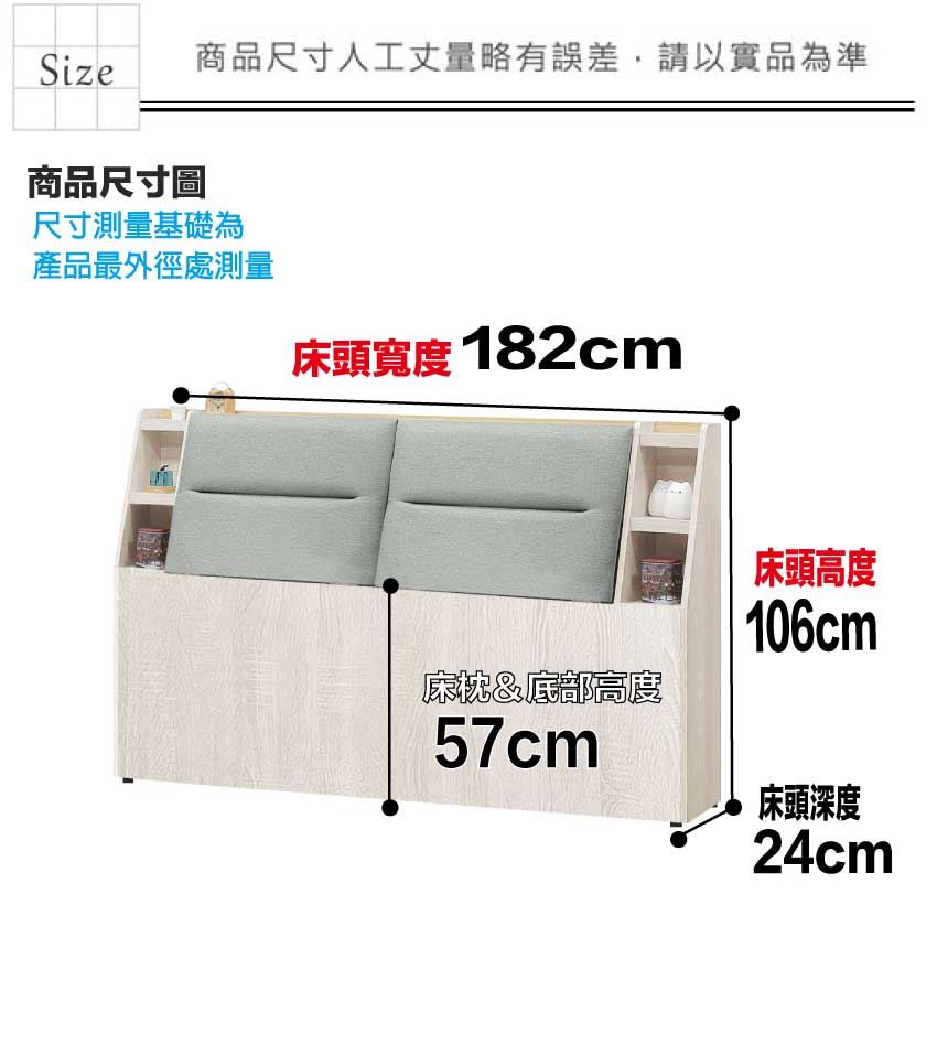 床頭尺寸:(寬)182x(深)24x(高)106/公分
