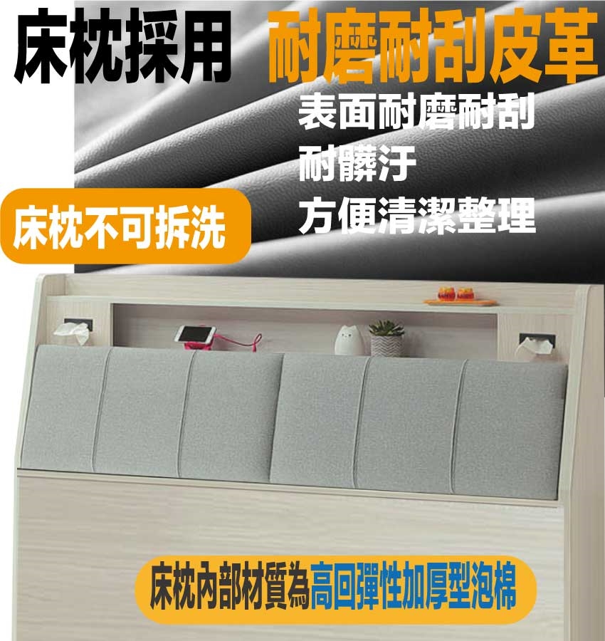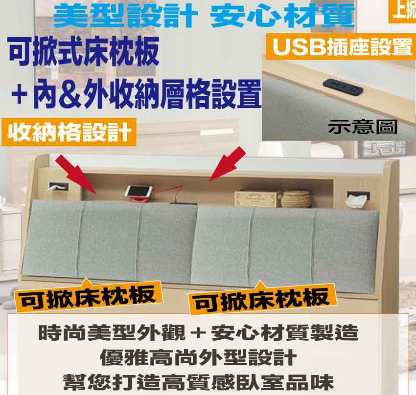 可掀式床枕板+內&外收納空間