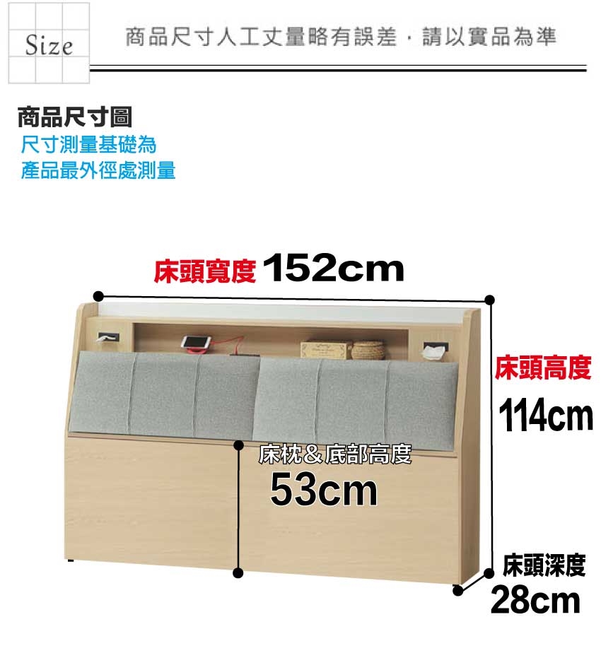 床頭尺寸:(寬)152x(深)28x(高)114/公分 ◆材質: 材質:防蛀木心板+防潮耐磨底座+耐磨耐刮皮革+高回彈泡棉 噴漆:防潮耐磨噴漆處理 ◎注意事項: 1.接單後,會有專員與您電聯確認送貨時間。 2.需以吊車吊運以當地吊車行情計,費用由消費者支付。 3.備註:本商品不含圖片上、家飾...等,情境圖之內容僅供參考。 4.請於配送人員到場時,檢查商品有無缺失,以免造成爭議。 5.允許的誤差尺寸範圍+-2%。 6.因拍攝燈光與電腦解析度瑩幕不同可能會造成實品與網頁上商品有些許色差,商品以收到實品為主。 ◎收貨與退貨: 1.實因特殊地型限制及(山區、濱海鄉、鎮、村、區)無法送貨時,本公司保有出貨與否之權利(下單後會由專人告知是否可配送)。 2.有電梯不收取費用! 無電梯樓層超過4樓以上(包含4樓)一樓層費用200元,現場支付給服務員。 3.超過鑑賞期,恕不接受退貨。 4.限非人為因素破壞毀損,才可退貨。 5.若退貨時,收件時間請與廠商協調,確保自己權益。 6.退貨時應保留贈品及附件完整(如有遺失部分,需酌收費用)。 ◎備註: .無回收服務。 .收貨與退貨:實因特殊地型限制及(山區、濱海鄉、鎮、村、區)無法送貨時,本公司保有出貨與否之權利(下單後會由專人告知是否可配送)。 .花蓮(縣市)、台東(縣市)、屏東(縣市場及其它縣市屬於山區、濱海鄉、鎮、村地區無配送服務,如您有需求,則需另外收取運費。(您可直接訂購,後續由廠商報價。) ※由於加價配送服務為一次消耗性商品,若有退換貨等情形加購之運費恕無法退還 ※運費報價皆為單趟計算。 ※使用加價配送地區,收貨時間會比一般地區再增加10個工作天。