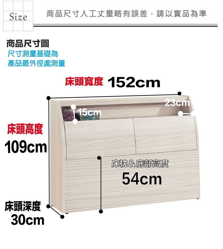 床頭尺寸:(寬)152x(深)30x(高)109/公分