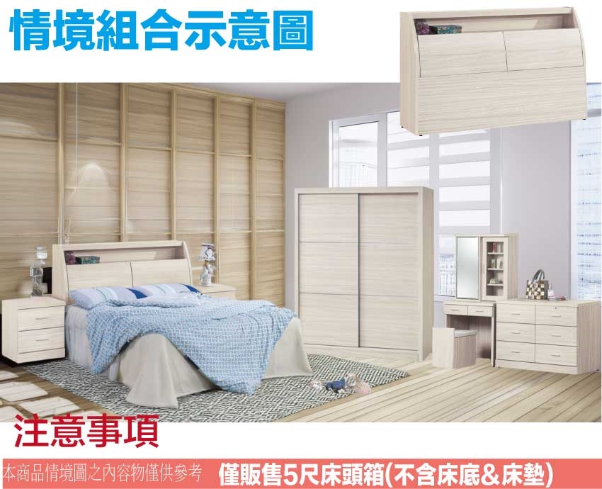 - ◆產品名稱:【綠家居】包格斯5尺雙人白梣木紋床頭箱