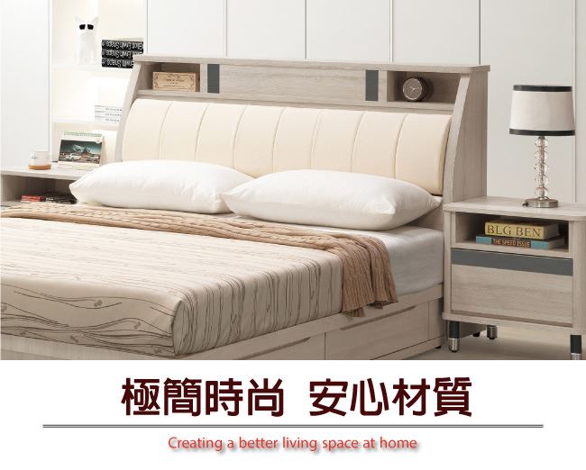 商品介紹 | 【綠家居】額爾 現代6尺雙人加大貓抓皮革床頭箱(不含床底+不含床墊)( 白橡木紋色系+現代簡約風格+安心材質製造,整體採用防蛀木心板+耐刮貓抓皮革+高密度泡棉等安心材質製造,外層採用優利坦全包式耐磨噴漆處理搭配採用可掀式床枕板+開放&隱藏式收納層格等便利設計,全由專人配送到家,專業安心服務,替你省下更多時間! 【商品特色】 白橡木紋色系+現代簡約風格+安心材質製造,使用放心+搭配居家更便利 採用防蛀木心板+耐刮貓抓皮革+高密度泡棉等安心材質製造 採用可掀式床枕板+開放&隱藏式收納層格等便利設計 此商品不需要DIY組立,此商品為組立後之成品 品質保證、專業設計、貼心服務 全由專人配送到家,專業安心服務,替您省下更多時間 |