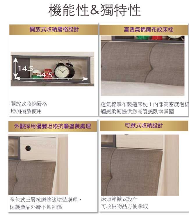 - 可掀式床枕板+內&外開放層格
