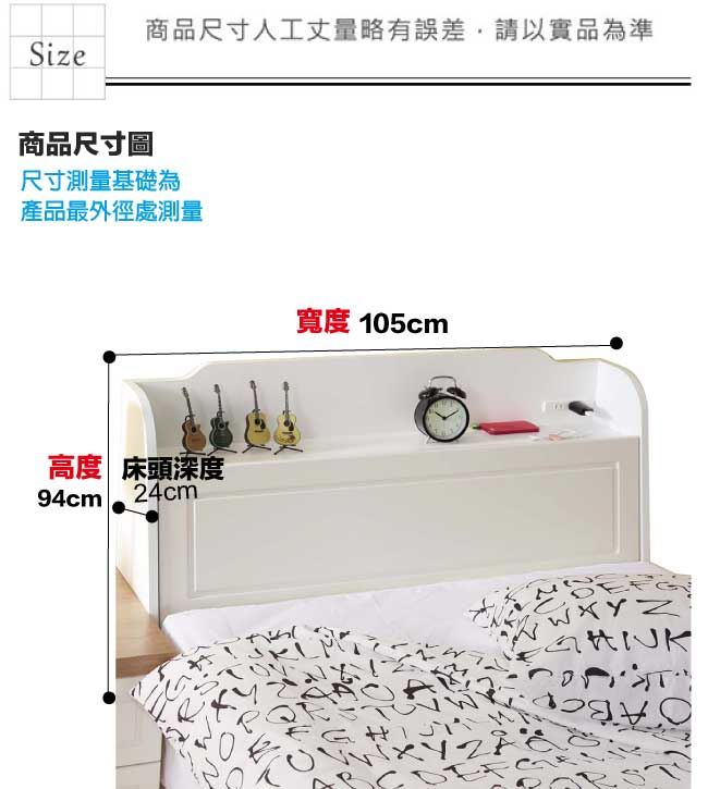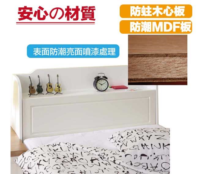 材質 | ◆產品名稱:【綠家居】路可簡約白3.5尺單人可收納床頭箱(不含床底+不含床墊) 床頭尺寸:(寬)105x(深)24(高)94/公分 ◆材質: 材質:防蛀木心板+防潮MDF板材 噴漆:防潮亮面噴漆處理