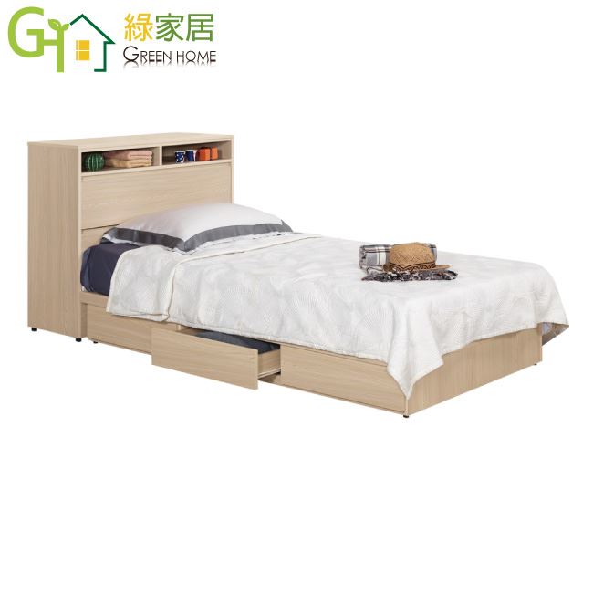 【綠家居】維爾3.5尺單人三抽床台組合(床頭箱+三抽床底+不含床墊)