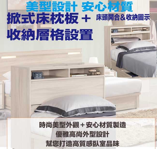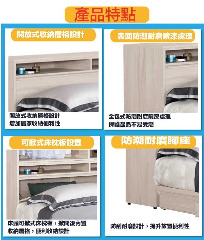 - 可掀式床枕板+內&外收納空間
