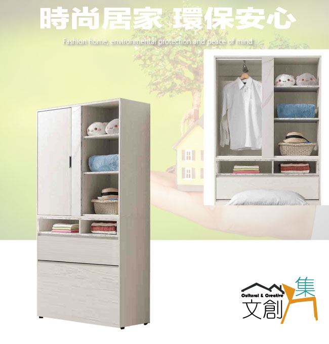 商 品 介 紹 | 【綠家居】菲可達3.5尺單人衣櫃式床頭箱(不含床底+不含床墊) 淺橡木紋色系+現代簡約風格+安心材質製造,整體採用防蛀木心板+防潮耐磨腳座+仿大理石紋路美耐皿面板等安心材質製造,產品外層採用防潮耐磨噴漆處理搭配採用開門櫃+吊衣桿+可掀式床枕板+內&外收納空間等收納空間設計,全由專人配送到家,專業安心服務,替你省下更多時間! 【商品特色】 淺橡木紋色系+現代簡約風格+安心材質製造,使用放心+搭配居家更便利 採用防蛀木心板+防潮耐磨腳座+仿大理石紋路美耐皿面板等安心材質製造 產品外層採用防潮耐磨噴漆處理 搭配採用開門櫃+吊衣桿+可掀式床枕板+內&外收納空間等收納空間設計 此商品不需要DIY組立,此商品為組立後之成品 品質保證、專業設計、貼心服務 全由專人配送到家,專業安心服務,替您省下更多時間