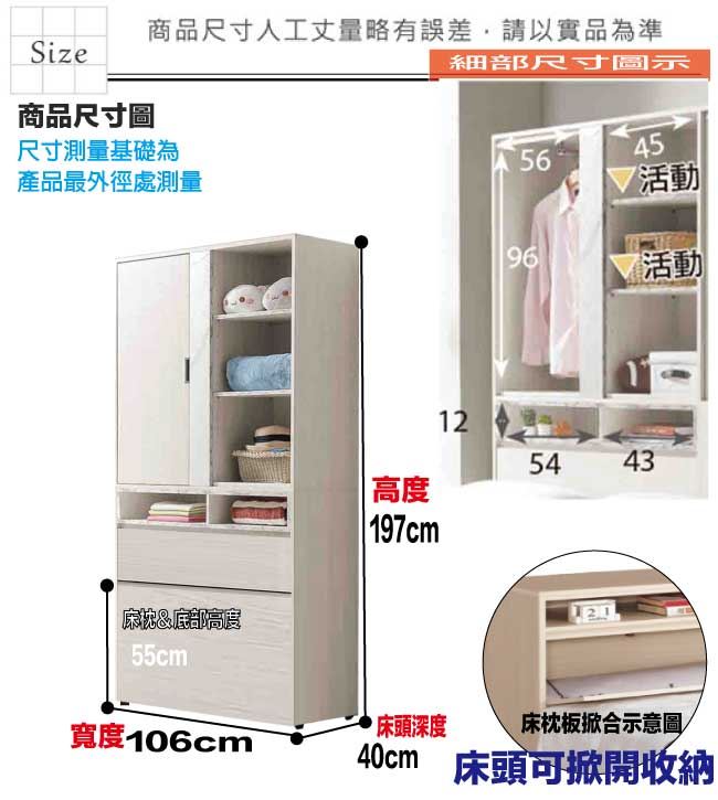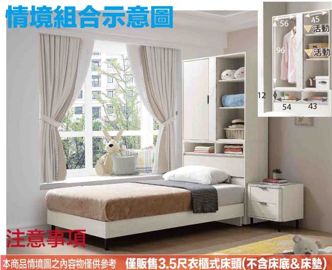 【綠家居】菲可達3.5尺單人衣櫃式床頭箱(不含床底+不含床墊)