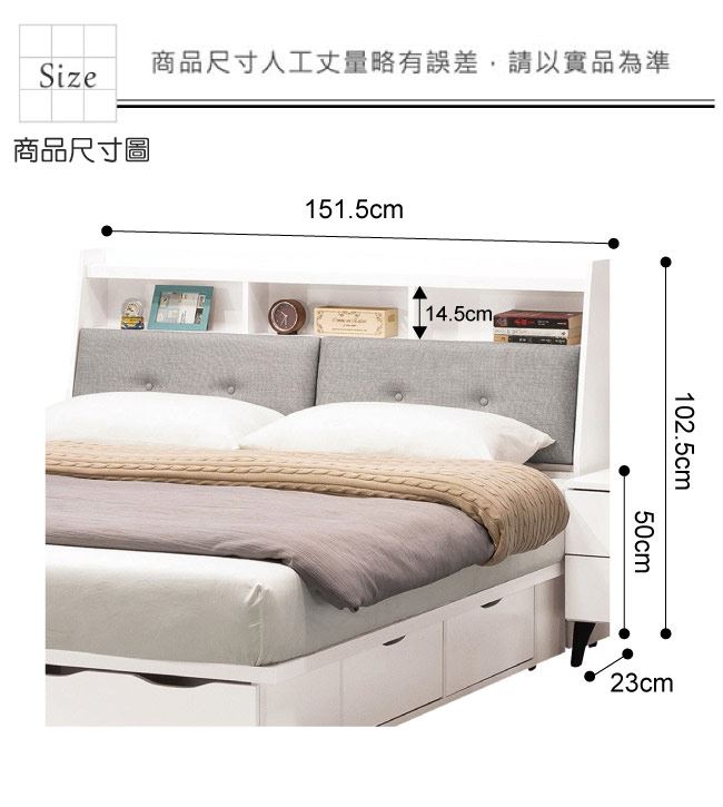 材質 | ◆產品名稱:【綠家居】 海地 現代5尺貓抓皮革雙人床頭箱(不含床底+不含床墊) 產品尺寸: 床頭尺寸:(寬)151.5x(深)23x(高)102.5/公分 ◆材質: 材質:防蛀木心板 材質:耐刮貓抓皮革+高密度三層泡棉 塗漆:優利坦全包式亮面噴漆處理 |