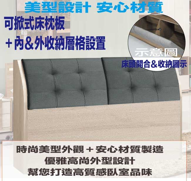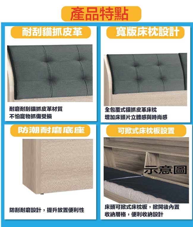 商 品 介 紹 | 【綠家居】歐澤5尺雙人貓抓皮革床頭箱(不含床底+不含床墊) 橡木紋色系+現代簡約風格+安心材質製造,整體採用防蛀木心板+防潮耐磨腳座+耐刮貓抓皮革+高回彈泡棉等安心材質製造,產品外層採用防潮耐磨噴漆處理搭配採用床頭箱可掀式床枕板+內&外收納層格等收納空間設計,全由專人配送到家,專業安心服務,替你省下更多時間! 【商品特色】 橡木紋色系+現代簡約風格+安心材質製造,使用放心+搭配居家更便利 採用防蛀木心板+防潮耐磨腳座+耐刮貓抓皮革+高回彈泡棉等安心材質製造 產品外層採用防潮耐磨噴漆處理 搭配採用床頭箱可掀式床枕板+內&外收納層格等收納空間設計 此商品不需要DIY組立,此商品為組立後之成品 品質保證、專業設計、貼心服務 全由專人配送到家,專業安心服務,替您省下更多時間