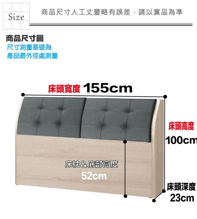 材質 | ◆產品名稱:【綠家居】歐澤5尺雙人貓抓皮革床頭箱(不含床底+不含床墊) 床頭尺寸:(寬)155x(深)23x(高)100/公分 ◆材質: 材質:防蛀木心板+防潮耐磨腳座+耐刮貓抓皮革+高回彈泡棉 噴漆:防潮耐磨噴漆處理 |