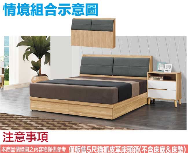【綠家居】約書亞5尺雙人貓抓皮革床頭箱(不含床底+不含床墊)