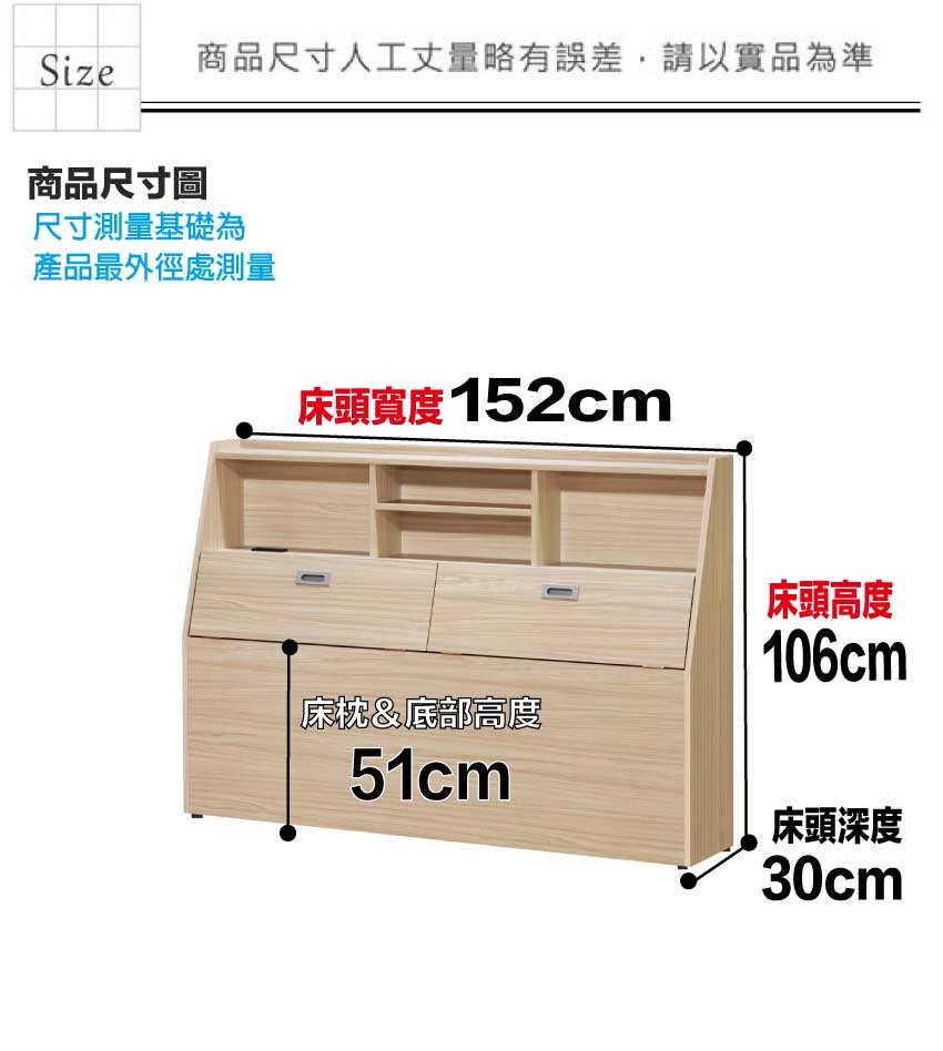 床頭尺寸:(寬)152x(深)23x(高)106/公分