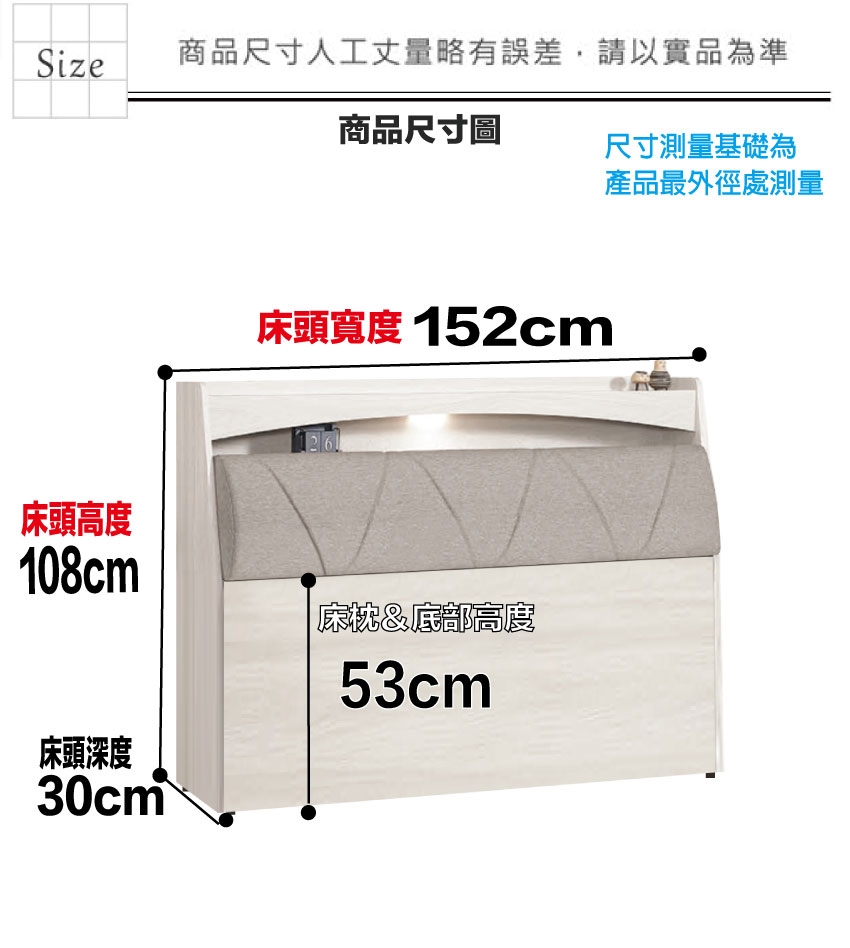 床頭尺寸:(寬)152x(深)30x(高)105/公分
