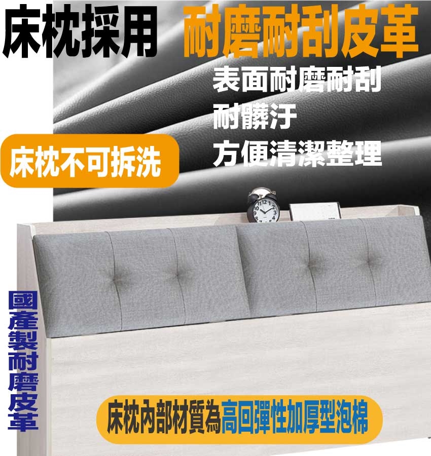 材質:防蛀木心板+防潮耐磨底座+耐磨耐刮皮革+高彈力泡棉