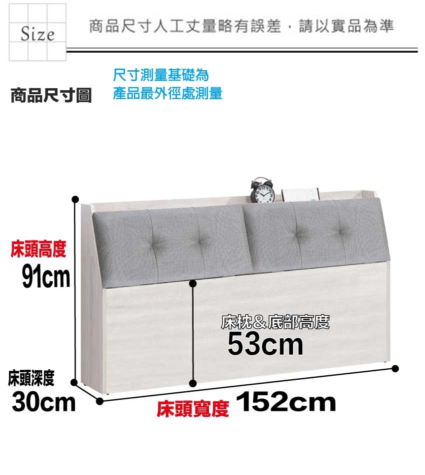 床頭尺寸:(寬)152x(深)30x(高)91/公分